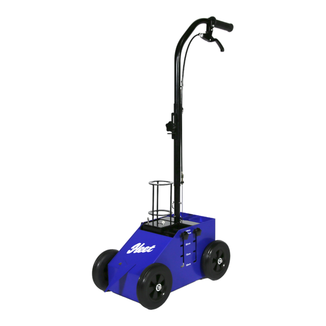 The Aeroliner 5 is a 4 wheeled machine for marking hard surfaces with Aerosols. It has 4 line width settings, 38mm, 50mm, 75mm and 100mm. The line definition is formed by the special line forming nozzle supplied with our Aerosols thus eliminating the need for the line forming wheels which can lead to problems with dripping paint.