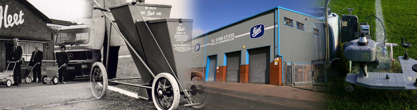 Fleet Line Markers Ltd a été créée en 1953 par M. Peter McGuffie et spécialisée dans la fabrication d'un produit appelé Fleet Renovator. Il s'agissait d'une pâte largement utilisée par les forces armées britanniques pour polir les sangles des uniformes, telles que les ceintures, les guêtres, etc. Avec l'abolition du service national en 1960, Peter décida d'orienter ses compétences en pigmentation vers la production de matériaux et machines de marquage de lignes. Au cours des années 1960, Fleet est rapidement devenu le leader du marché du marquage de lignes sportives. Même à cette époque, Fleet remportait des prix pour son innovation. L'une des premières récompenses reçues a été le prestigieux IOG Gold Award pour la première machine de marquage à sec. Depuis, d’autres récompenses ont suivi chaque décennie.