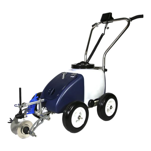 Fleet Kombi Orange Line Marker boasts all of the features of the Kombi Classic with added power and resources. At the heart of the machine is our latest heavy duty lithium ion phosphate battery capable of twice the power as standard models. This removable docking battery offers easy charging and 8 hour battery life meaning a days marking is no problem for this line marker. The pressure adjusting control panel means you can be in complete control of how much paint you are putting down giving you the flexibility of changing pressure for different pitch types. The Kombi Orange gives crisp and well defined lines and the adjustable tool-less quick fit wheeled knib means the machine can be used on a variety of sports surfaces. Natural/hybrid grass, concrete, asphalt, wood, artificial grass, rubber track and EPDM are all no problem for the Kombi. After marking, the Knib can be lifted off and situated on the bonnet horn for effortless transportation. Heavy duty stainless steel handle bars to suit all user heights and a built in water tank meaning the Kombi can be flushed through and cleaned with the flick of a switch. We recommend using our Kombi Klamp when transporting any of the Kombi Range.